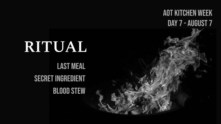 If you have any questions about prompts or the event, please feel free to shoot us a DM at @aotkitchen, or mods @fishhuo or @parasiticyeager. Thank you so much for reading!